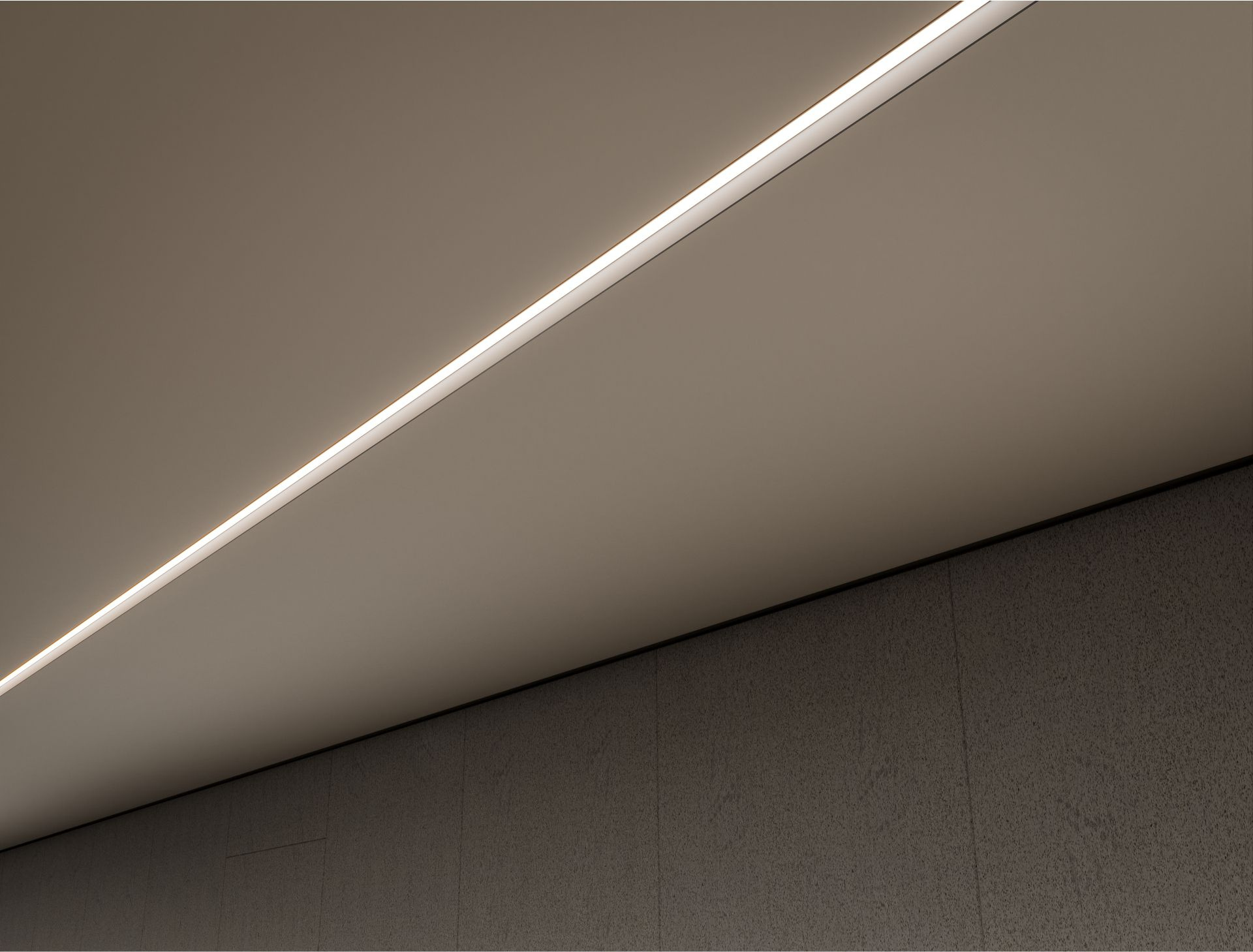 Zapuštěný profil, vhodný pro finální úpravu omítkou, navržený pro akcentní osvětlení a instalaci 2 LVíce