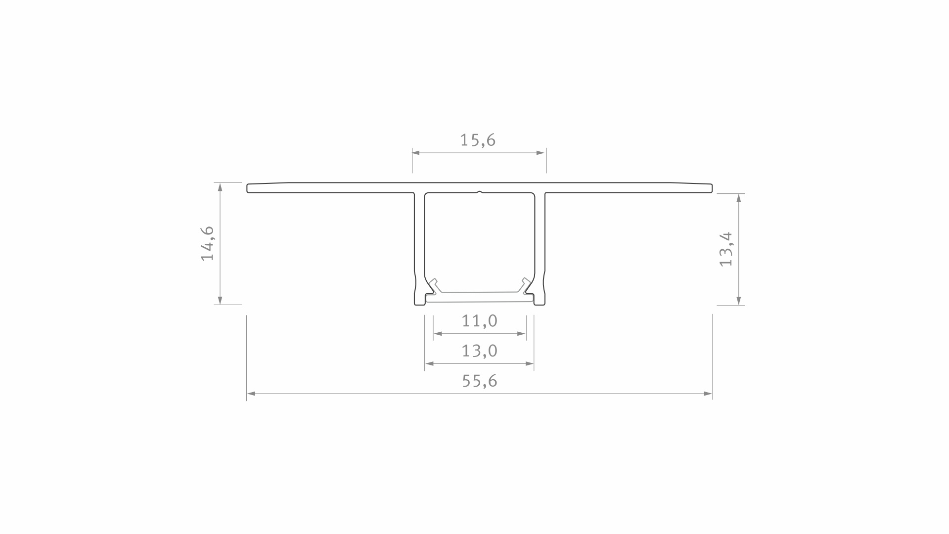 Profil s jedním LED pro instalaci mezi dvěma sádrokartonovými deskami. Umožňuje rychlou instalaci pomocí šroubů a finální úpravu sádrou bez nutnosti použití montážní sítě.