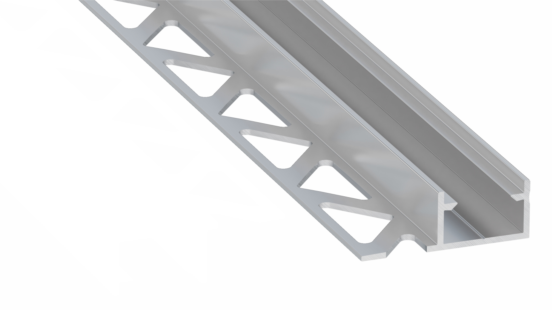 Hraniční profil (koncový) určený pro obklady, lepený pod keramickou dlažbu, perforovaný s krytem třídy těsnosti IP54. Pro použití jako doplňkové osvětlení.