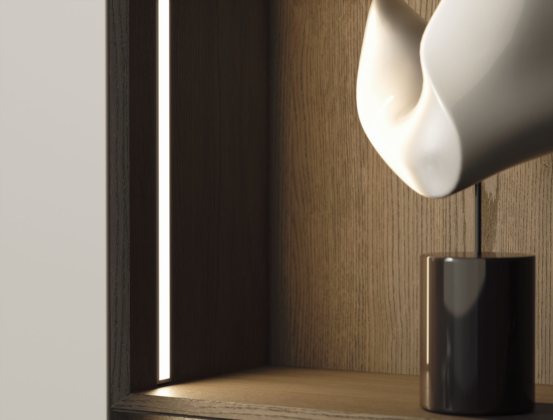 Výsledek montáže zápustného profilu GEMI s DVOJITÝM krytem do nábytku
