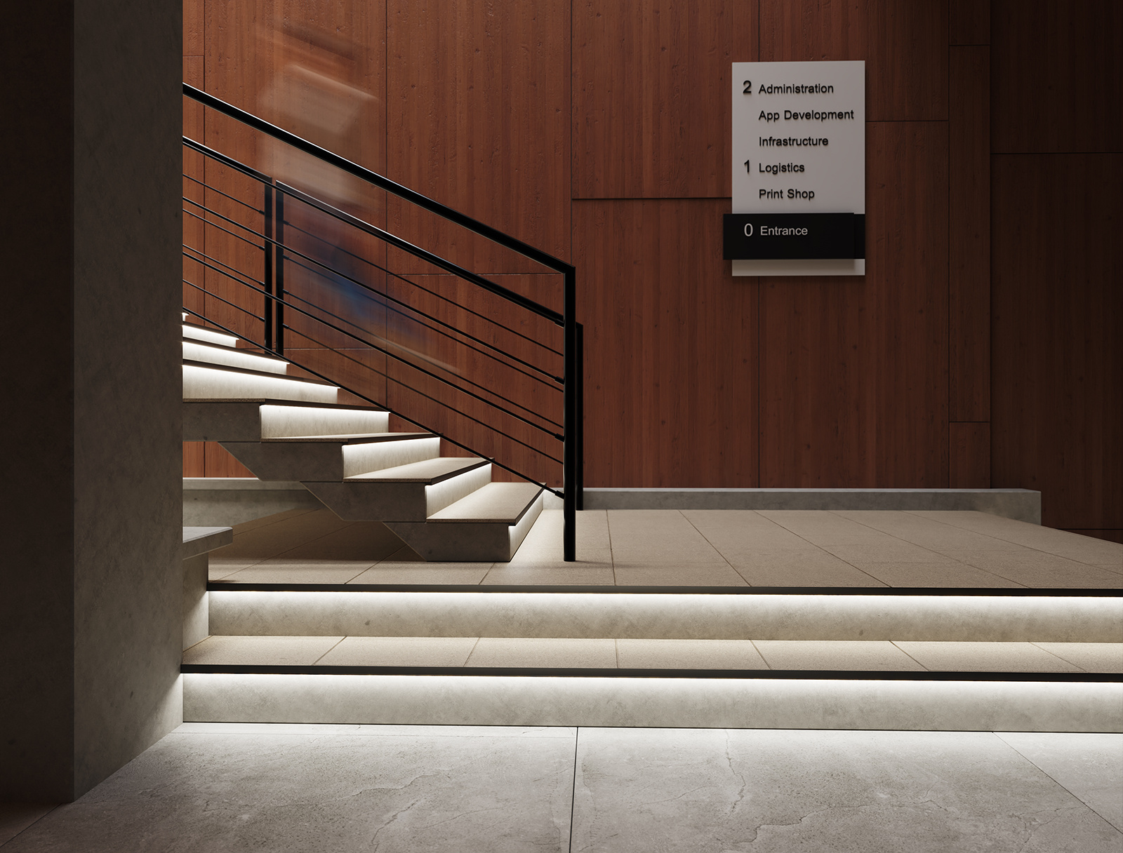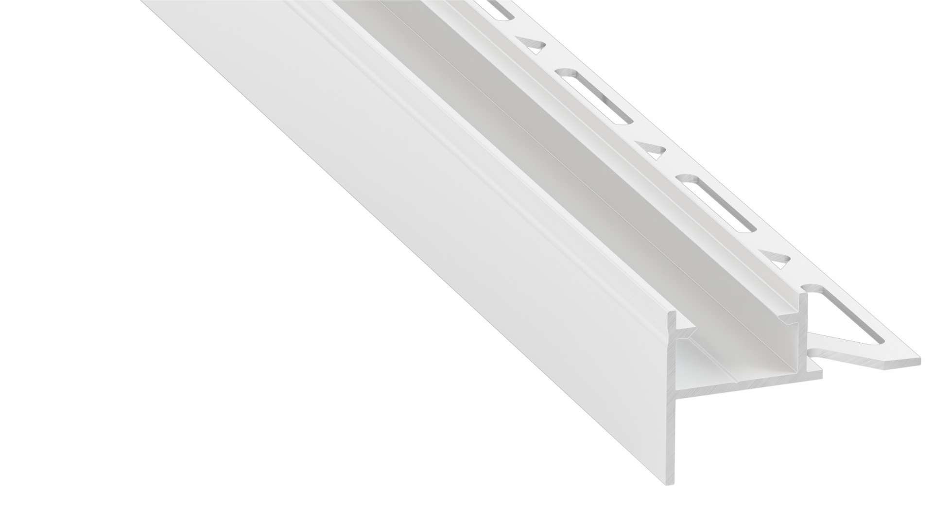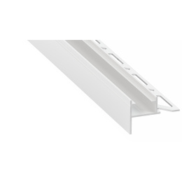 Profil schodů pro dlaždice, lepený pod keramickou dlažbou s jedním děrovaným listem a krytem s krytím IP54. Pro použití jako osvětlení pro zvýraznění.