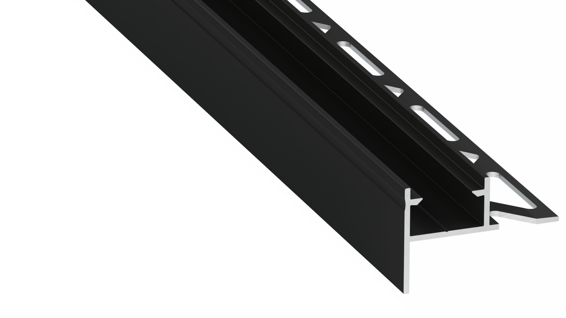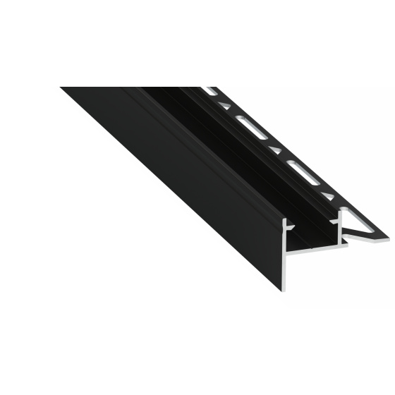 Profil schodů pro dlaždice, lepený pod keramickou dlažbou s jedním děrovaným listem a krytem s krytím IP54. Pro použití jako osvětlení pro zvýraznění.