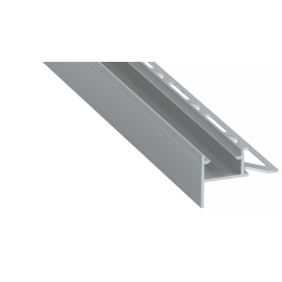 Profil schodů pro dlaždice, lepený pod keramickou dlažbou s jedním děrovaným listem a krytem s krytím IP54. Pro použití jako osvětlení pro zvýraznění.