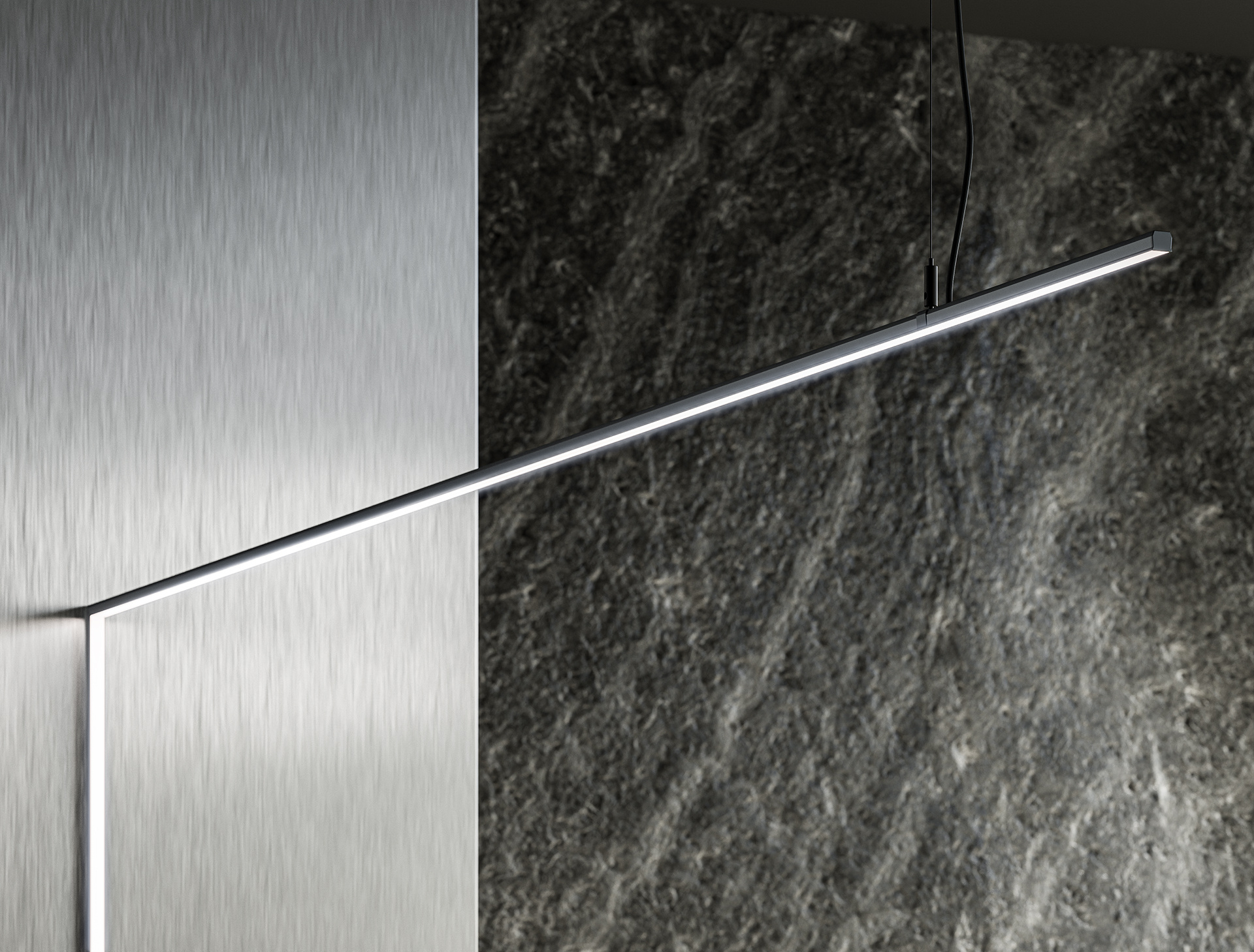 Povrchový nebo zavěšený LED profil určený pro podsvícení dekorativních a doplňkových prvků nábytku a interiérových povrchů.