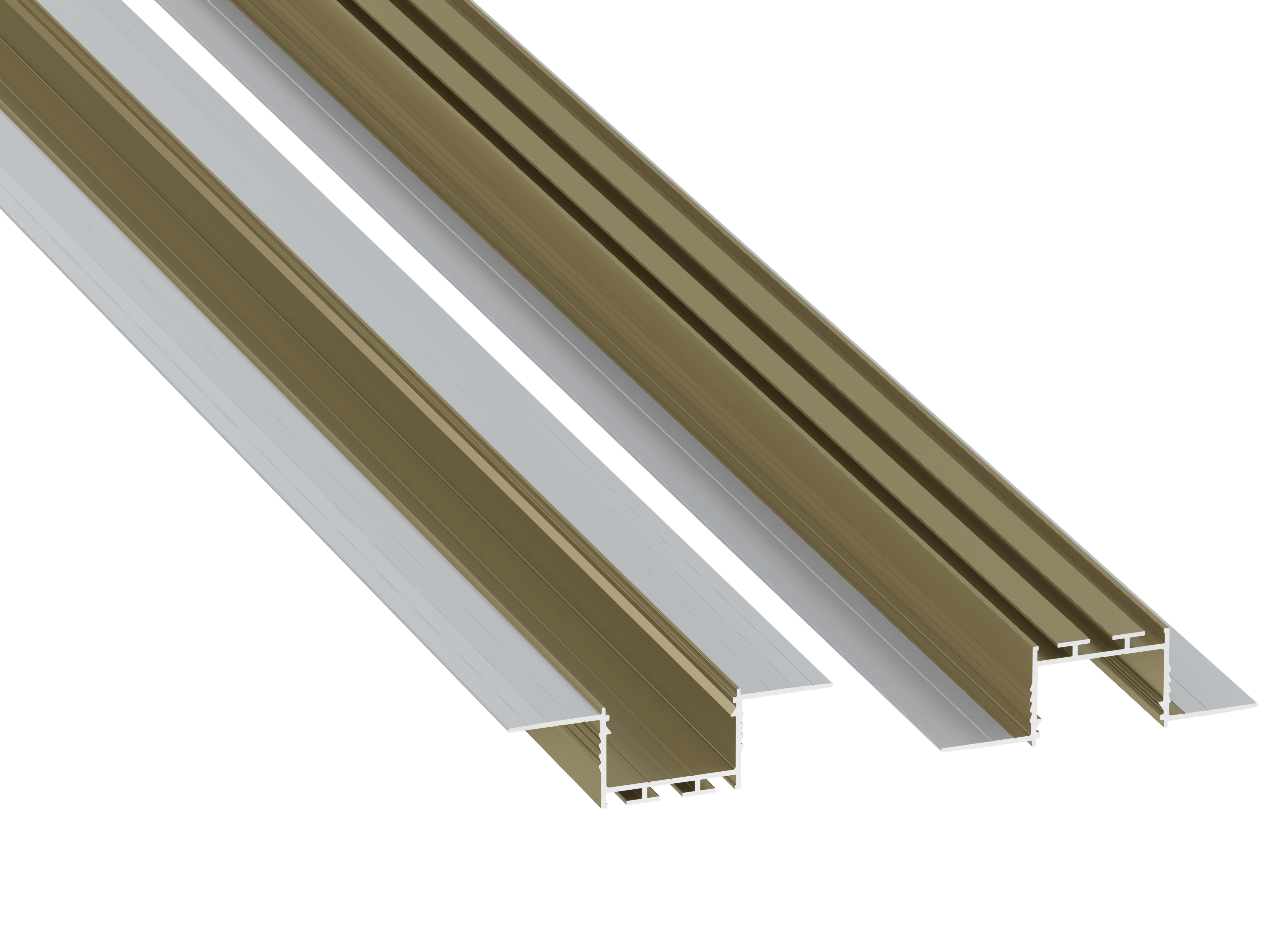 Zapuštěný LED profil určený k zabudování do omítky. Poskytuje rovnoměrnější linii světla díky hlubšímu uložení LED pásků.