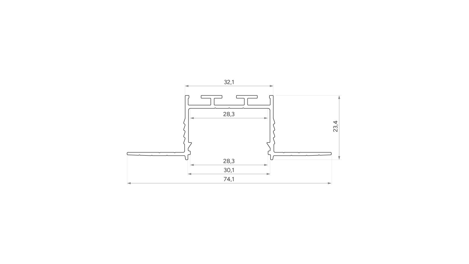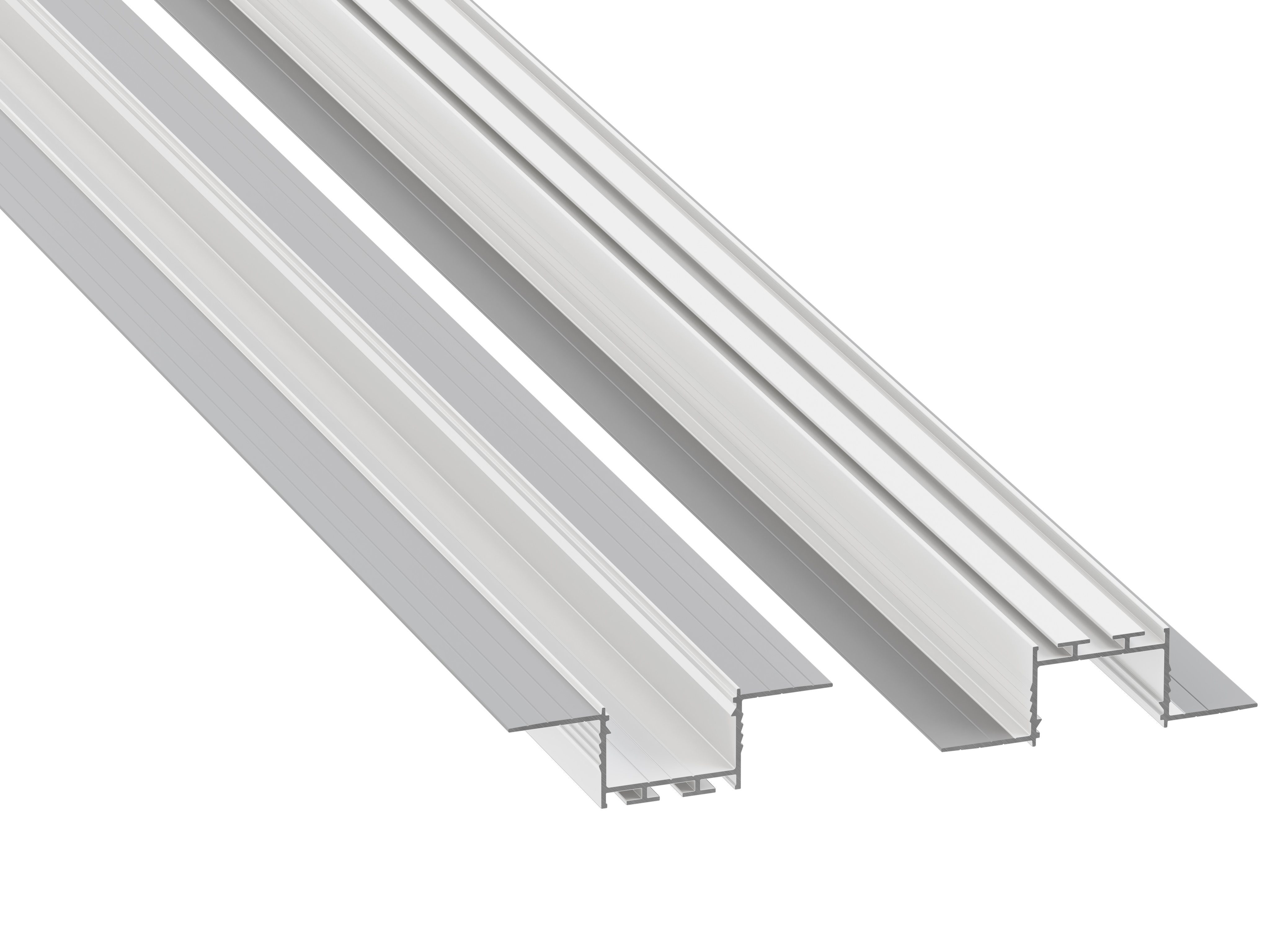 Zapuštěný LED profil určený k zabudování do omítky. Poskytuje rovnoměrnější linii světla díky hlubšímu uložení LED pásků.