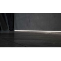 Výsledný vzhled při instalaci sádrokartonového soklu profilu Tiano BASIC s krytem pomocí lepicí montáže.