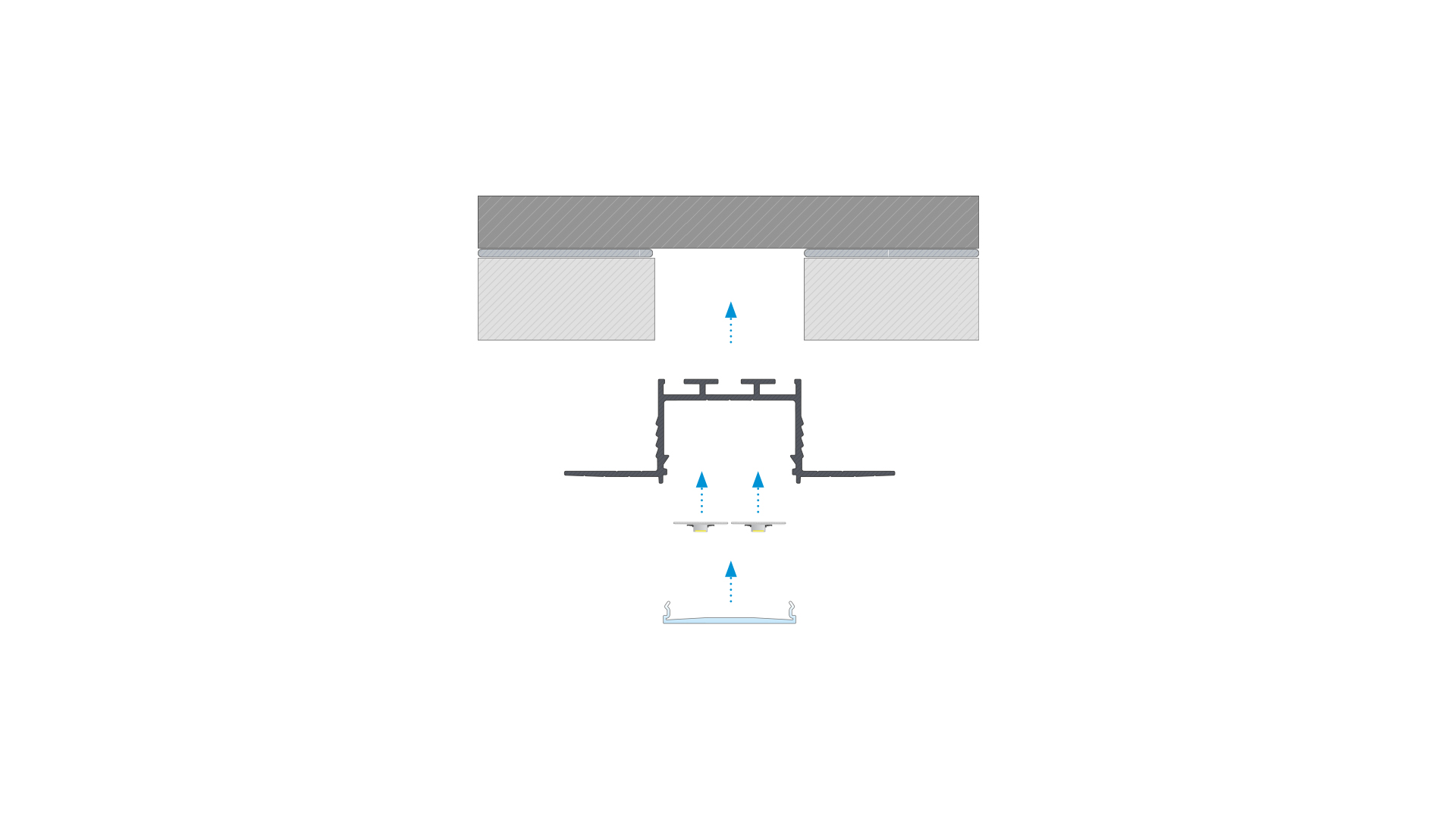 Návod k instalaci LED profilu s zapuštěným krytem MIDI mezi deskami.
