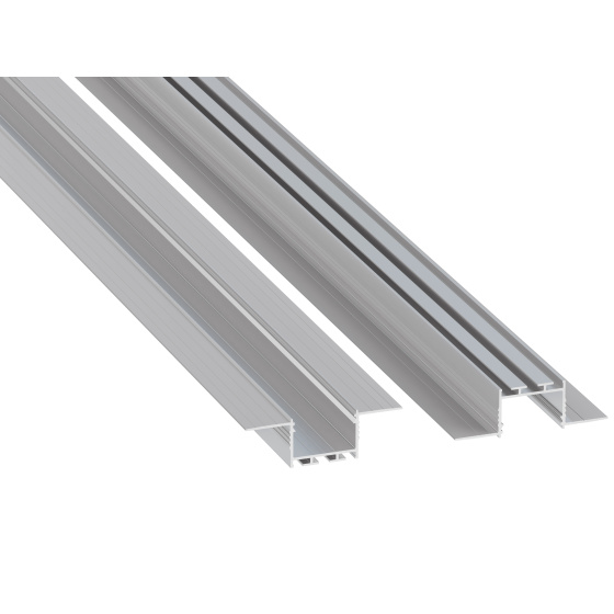 Zapuštěný LED profil určený k zabudování do omítky. Poskytuje rovnoměrnější linii světla díky hlubšímu uložení LED pásků.