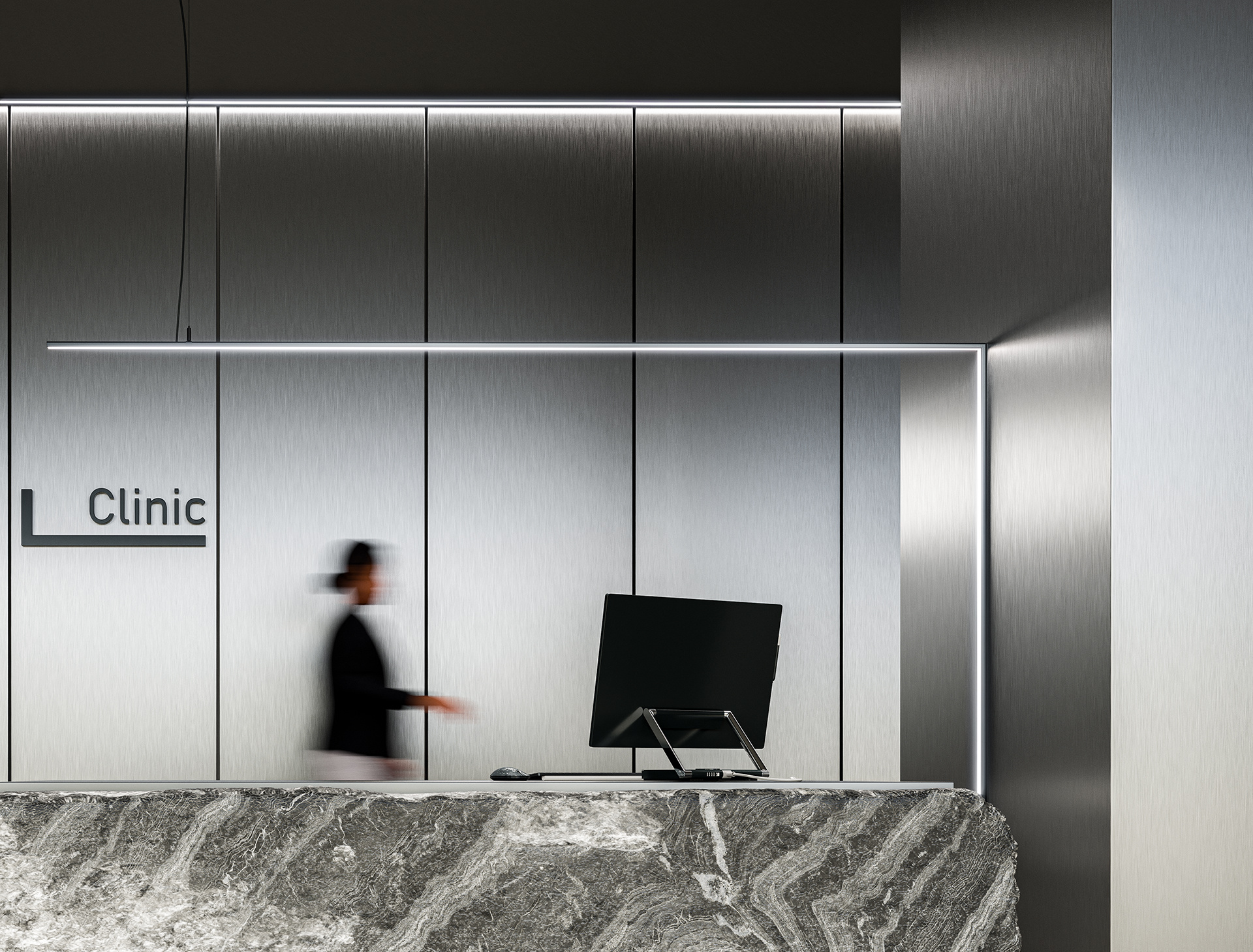 Výsledek instalace LED profilu Axel s NANO krytem pomocí montážní konzole Axel.