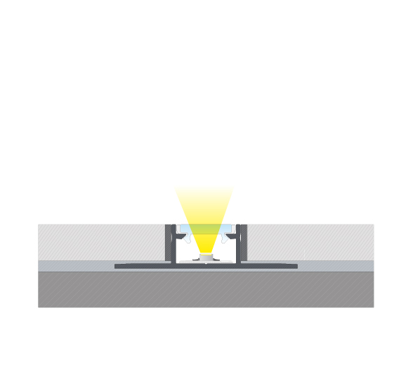Profil pro obklady, pro instalaci pod obkladem mezi obklady, perforovaný s difuzorem s krytím IP54. Pro použití jako dekorativní osvětlení.