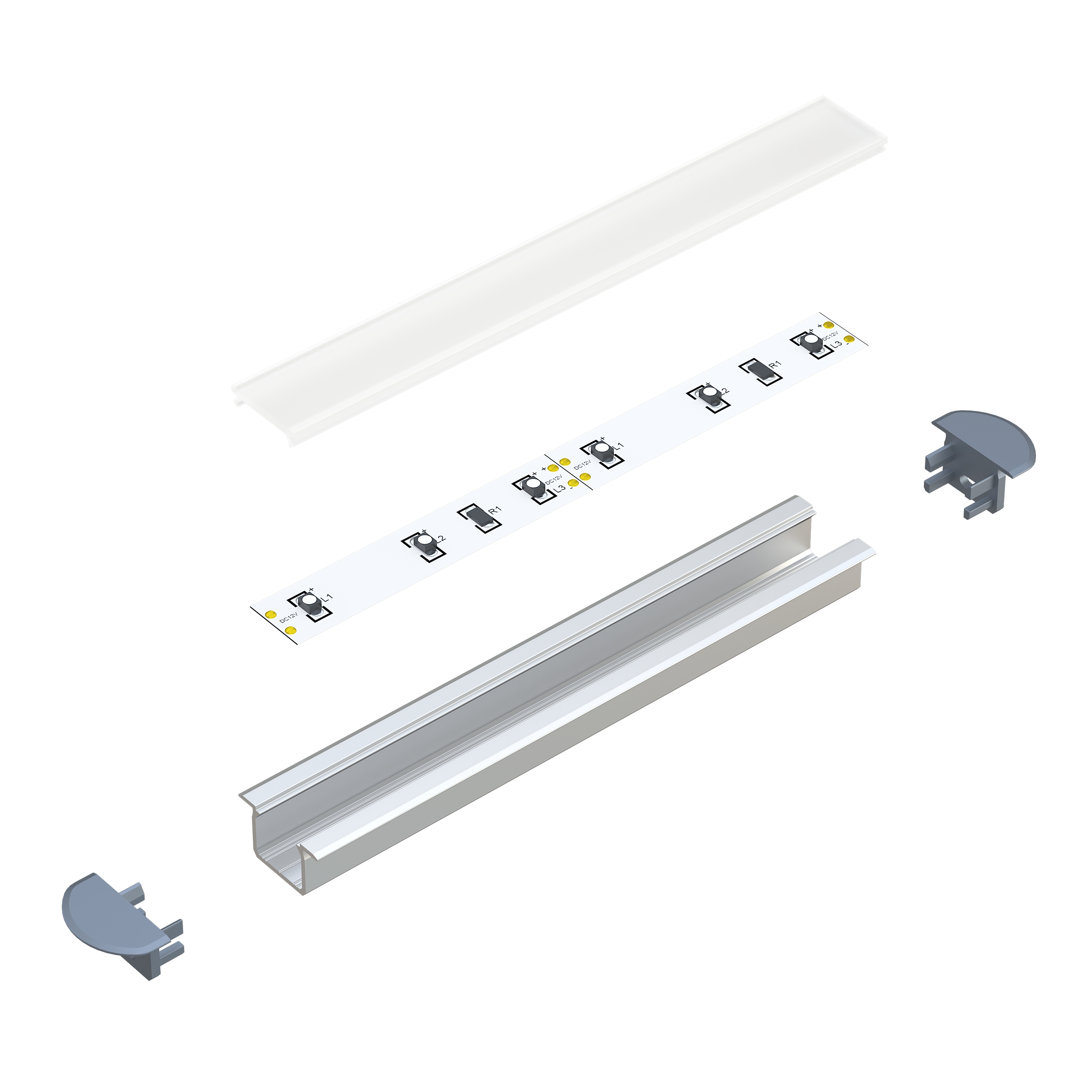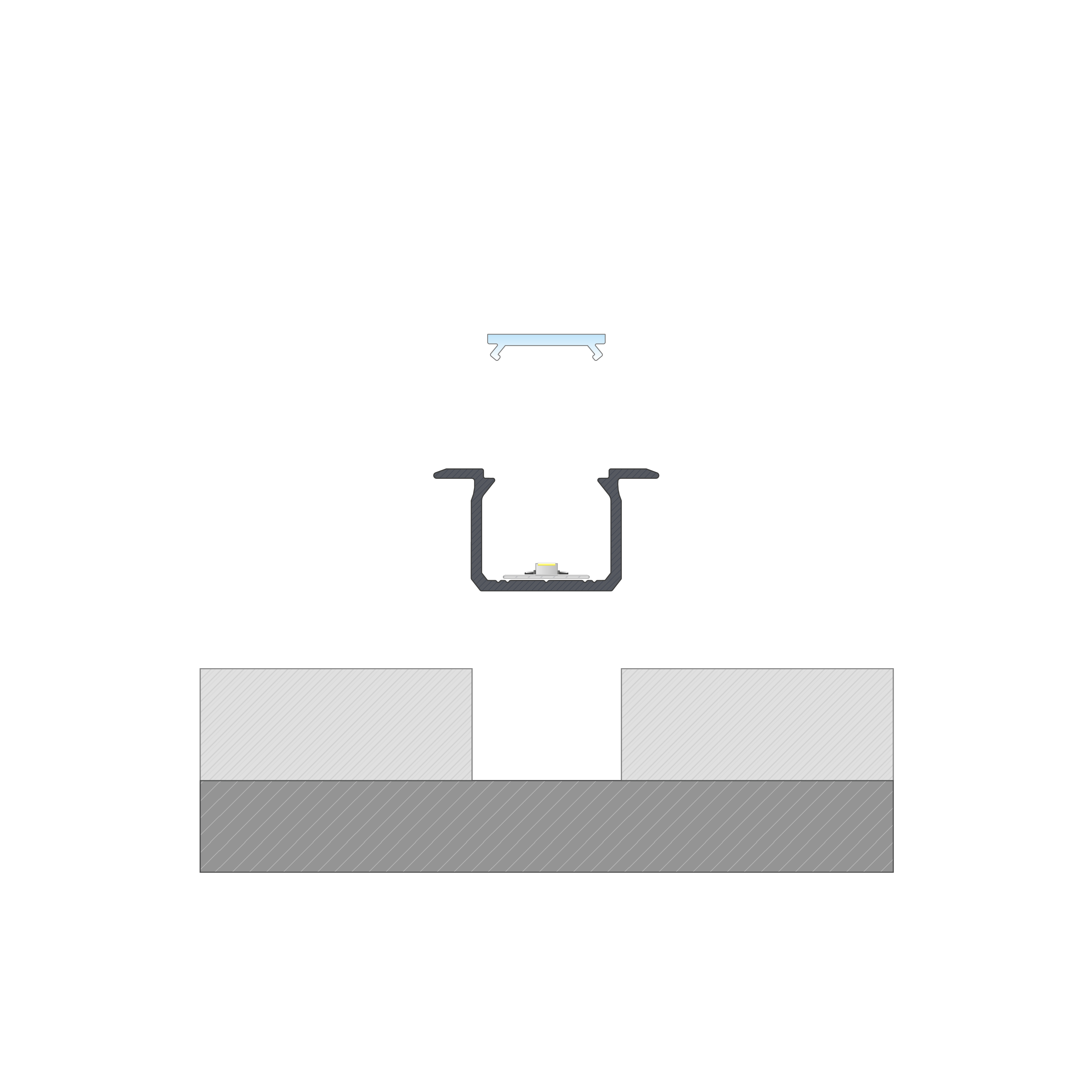 Nový zapuštěný LED profil s výškou upravenou na standardní 12mm sádrokarton nebo desku nábytku. Umožňuje rychlou zapuštěnou instalaci bez nutnosti finální vrstvy.