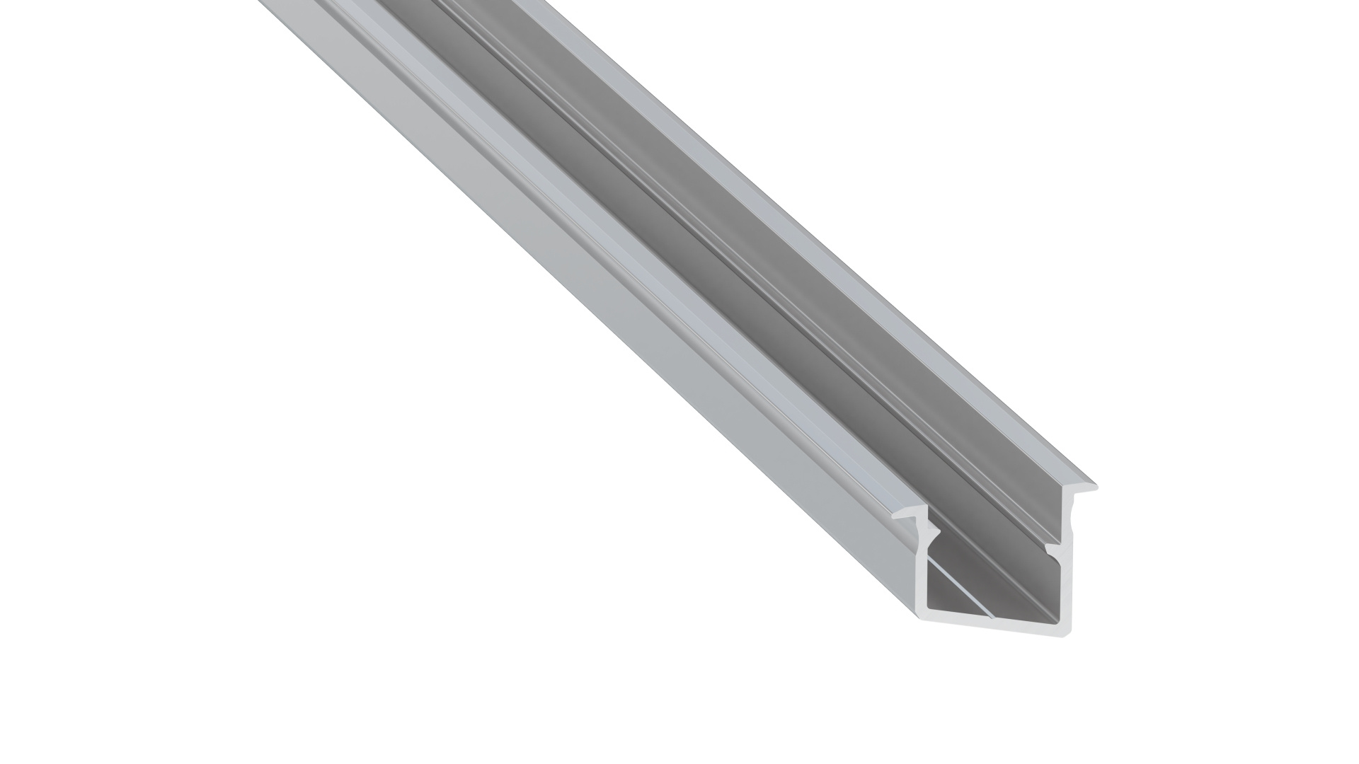 Zapuštěný, nakloněný nábytkový profil pro suchou instalaci. Vhodný pro osvětlení poliček a různých tVíce
