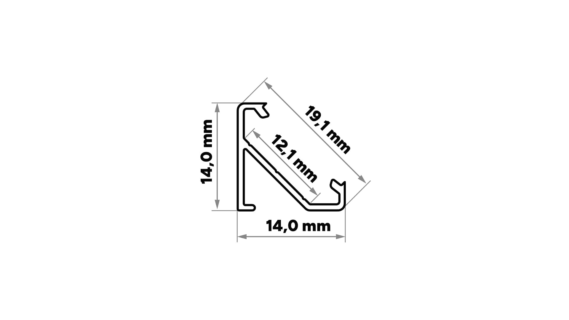 Profile available in lengths: 1000 mm, 2020 mm, 3000 mm