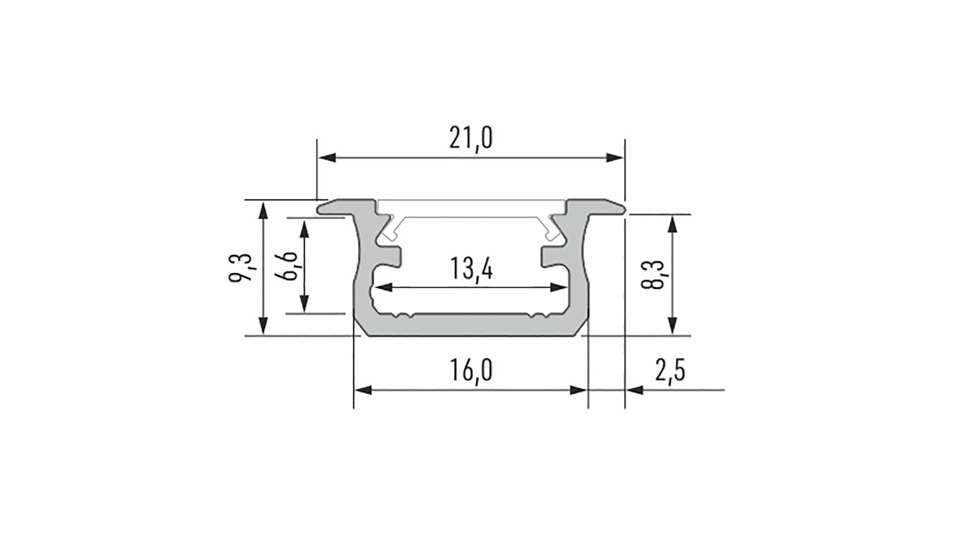 Hliníkový profil B Lumines pro vsazení děr frézovaného povrchu.