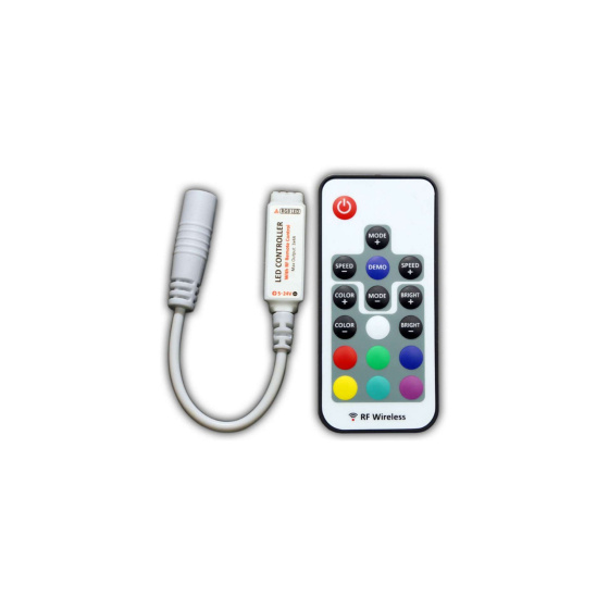 Ovladač RGB 12V 72W 18 tlačítek mini RF Bílý je zajímavý a kompaktní ovladač navržený pro RGB pásky. Dálkový ovladač má mnoho různých funkcí pro ovládání světla. Použití radiových vln eliminuje problém s namířením dálkového ovladače přímo na přijímač (což je požadováno u infračervených ovladačů).