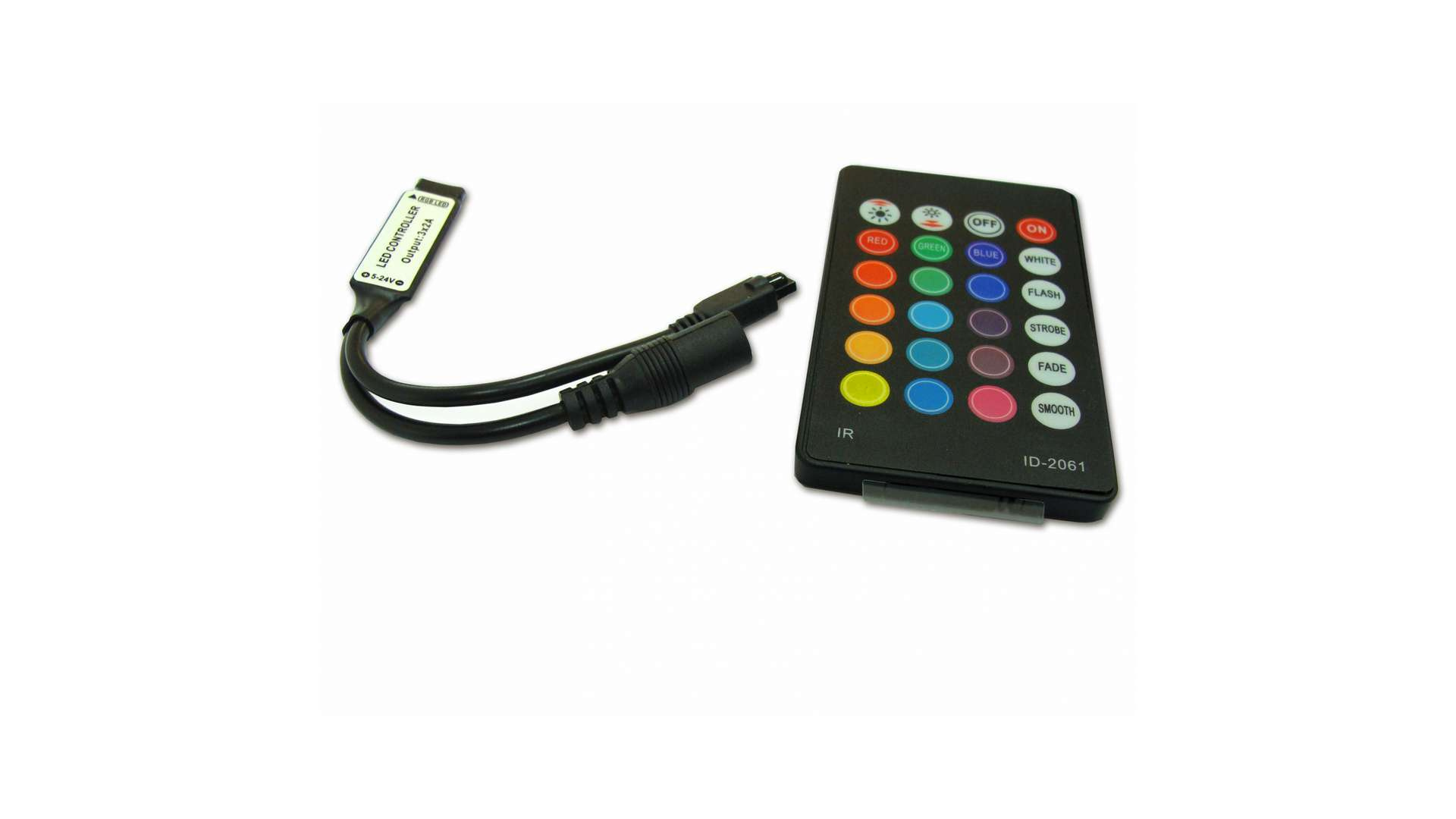VíceOvladač RGB pro LED pásky 3x2A 12V + IR dálkové ovládání MINI - je minimalistická verze standardního ovladače pro RGB LED pásky. Funguje pomocí IR (infračervený). Menší rozměry ovladače způsobují, že není příliš viditelný a je diskrétní. Jeho úlohou je směrovat IR přijímač dálkového ovládání, který je umístěn v ovladači. Jedná se o levnější alternativu k rádiovému ovladači .