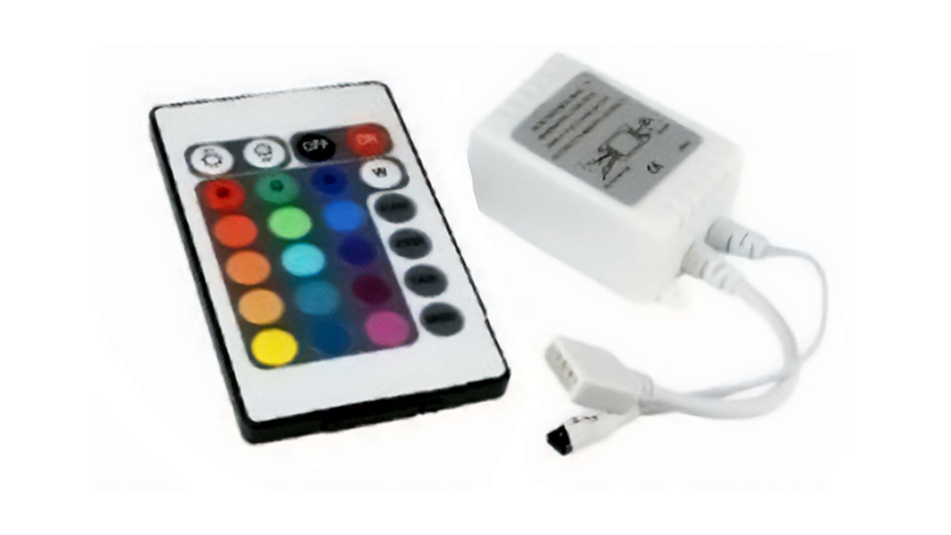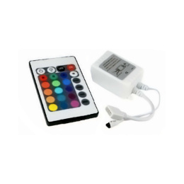 RGB ovladač pro LED pásky 3x2A 12V + IR dálkový ovladač – je standardní ovladač pro RGB LED pásky. Ovladač funguje pomocí IR (infračervené). Při používání musí být dálkový ovladač namířen na přijímač. Jedná se o levnější alternativu k rádiovému ovladači.