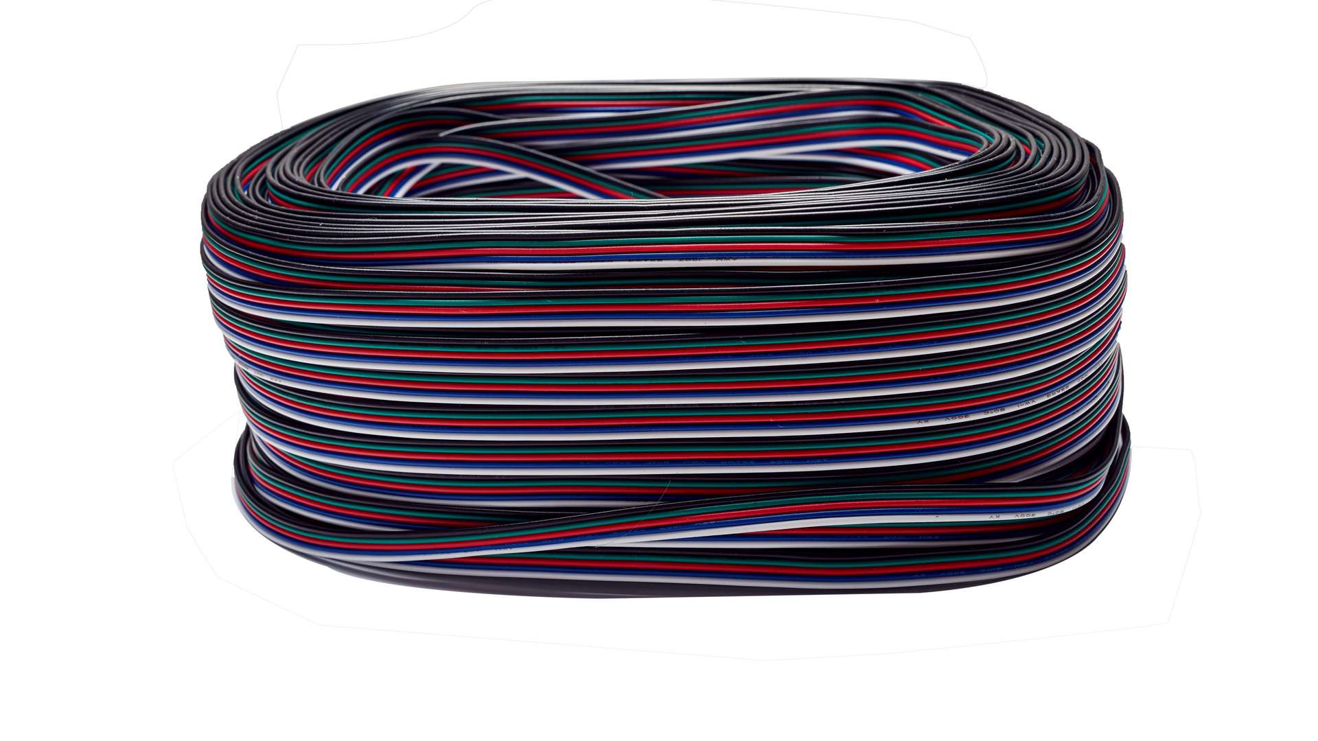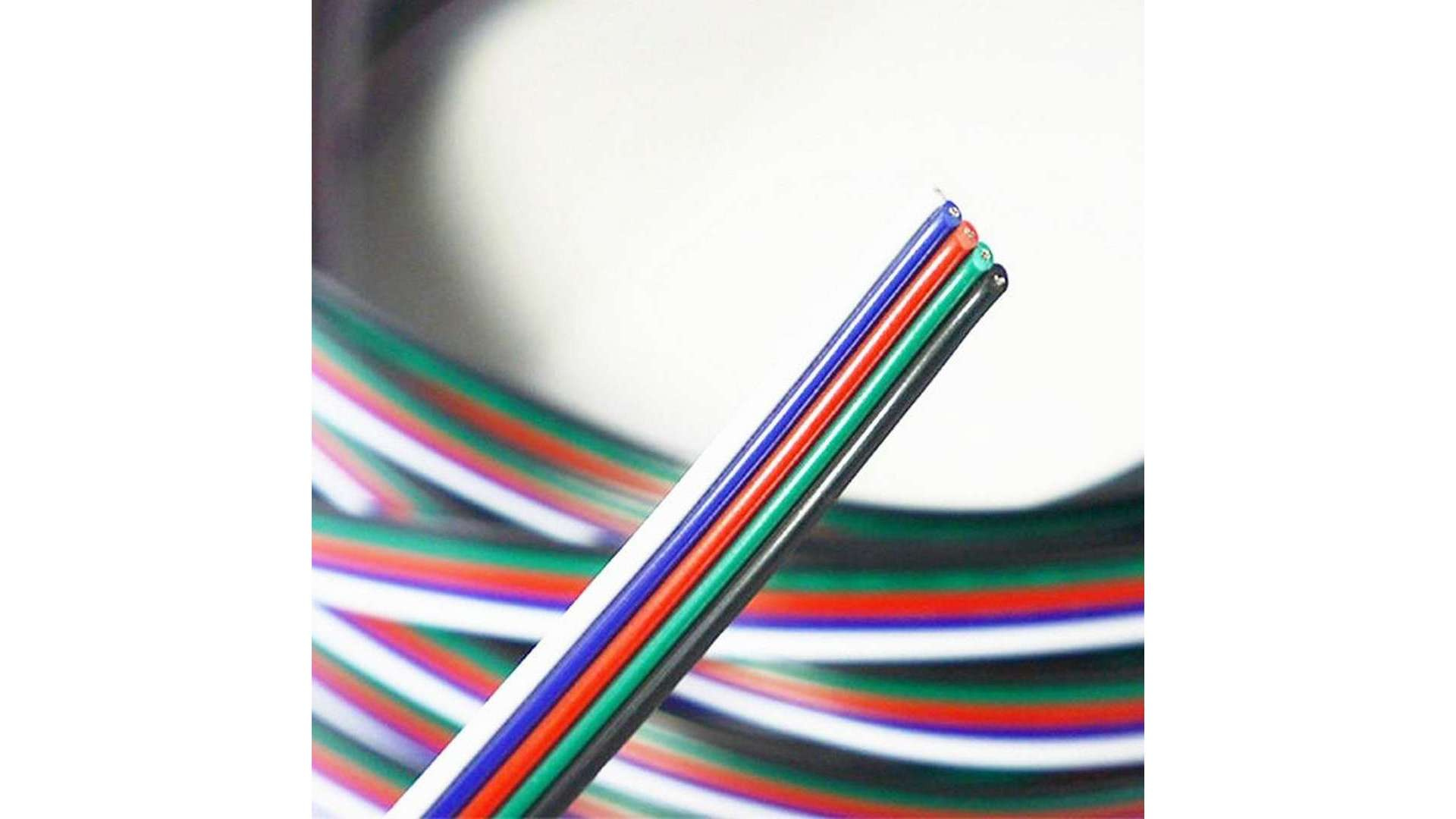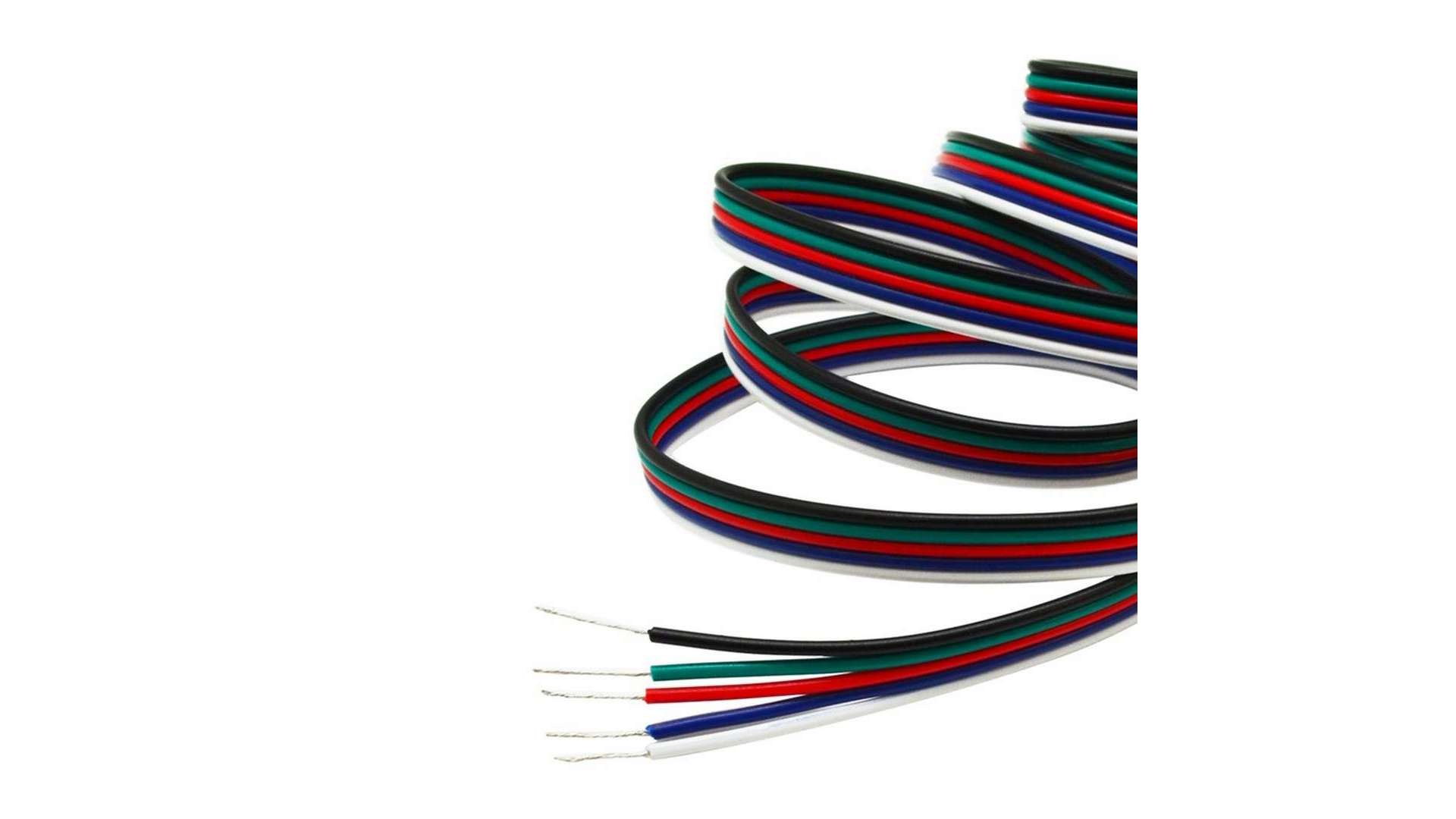 VícePětižilový kabel určený pro všechny typy připojení 12/24V RGBW LED pásků. Kabel je plochý, stužkovitý měděný kabel s pěti dráty označenými příslušnými barvami ve stejném pořadí jako na LED pásku.