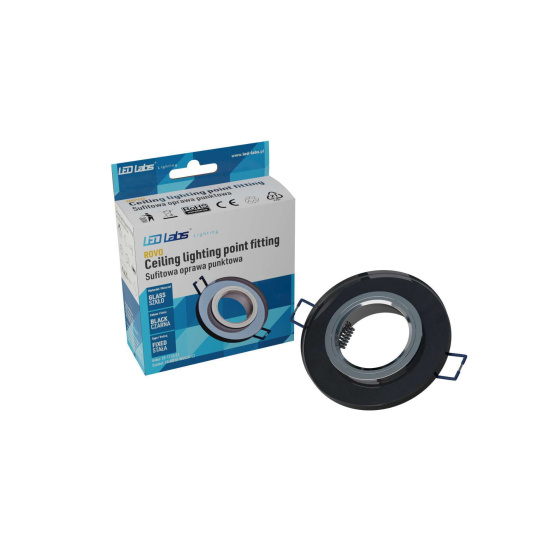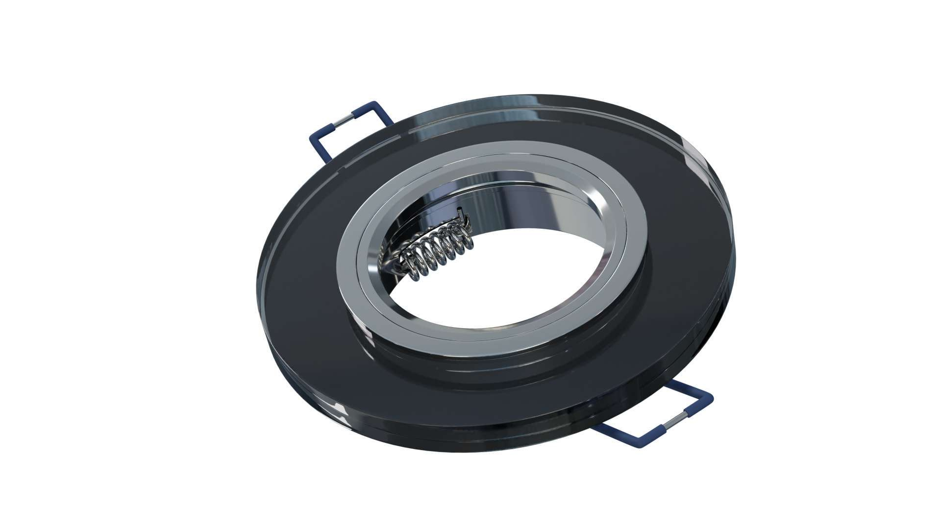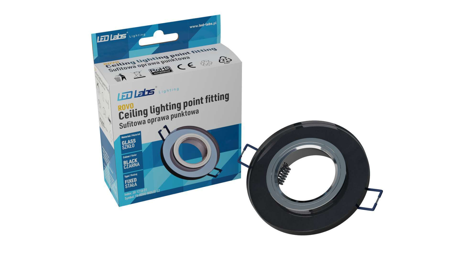 Zapuštěné stropní světlo ROVO kulaté, pevné, černé, sklo