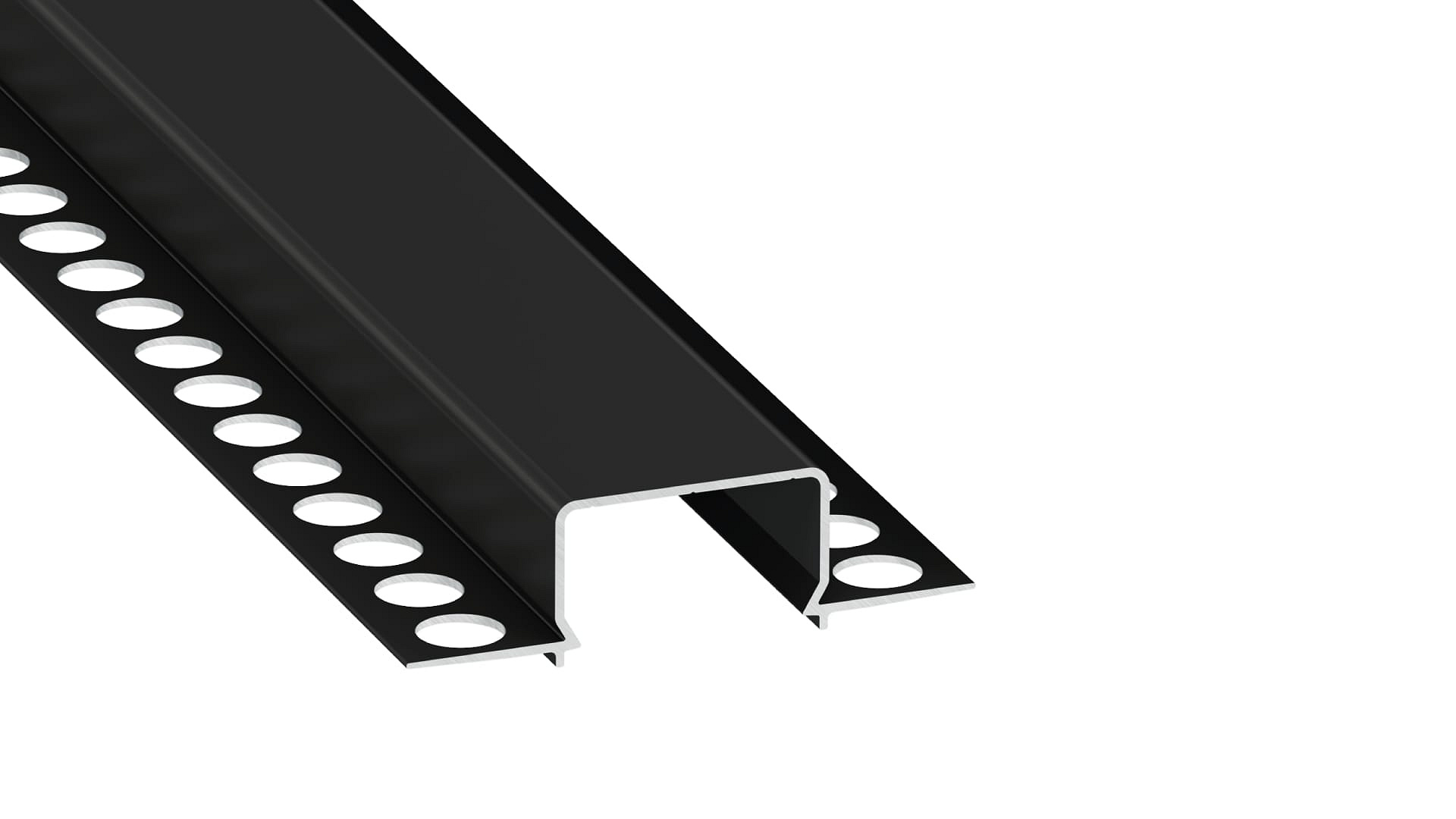 Double strip LED profile for installation in plasterboard. The smoothing compound penetrates through the perforations in the flanges, which ensures fast, trouble-free and durable installation.