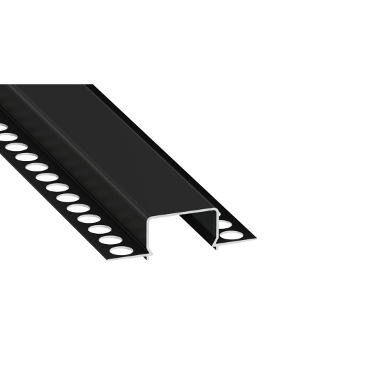Double strip LED profile for installation in plasterboard. The smoothing compound penetrates through the perforations in the flanges, which ensures fast, trouble-free and durable installation.