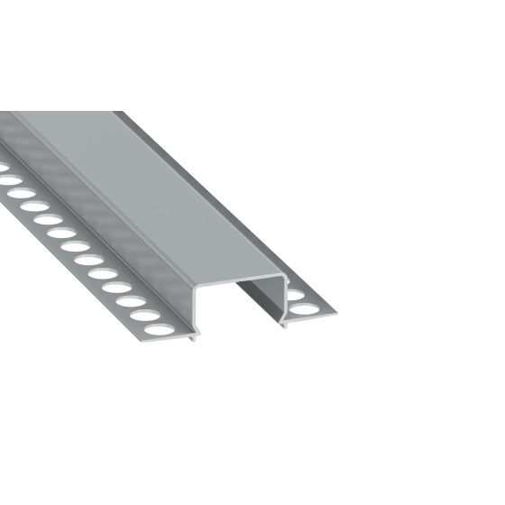 Double strip LED profile for installation in plasterboard. The smoothing compound penetrates through the perforations in the flanges, which ensures fast, trouble-free and durable installation.