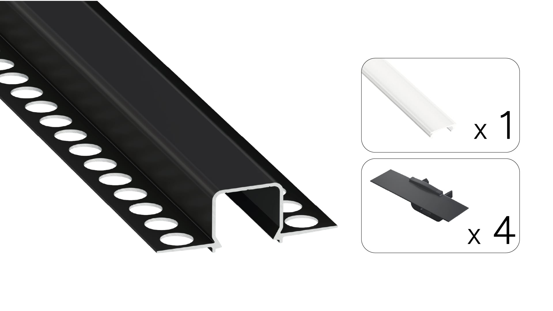 Set contains: 1 x MOSSO LED profile, 1 x S14 LED cover, 4 x MOSSO End cap