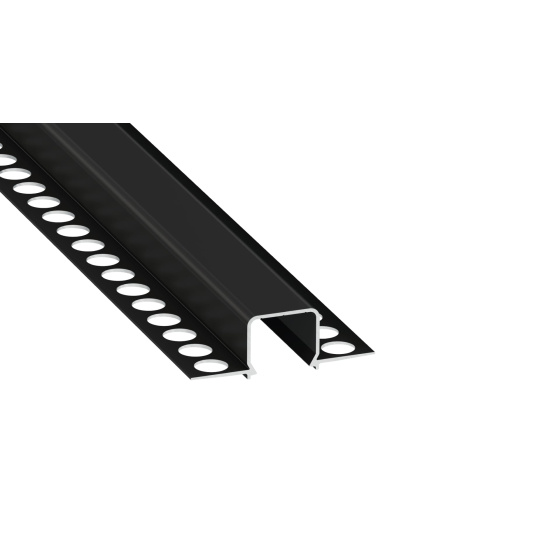 Single strip LED profile for installation in plasterboard. The smoothing compound penetrates through the perforations in the flanges, which ensures fast, trouble-free and durable installation.