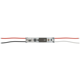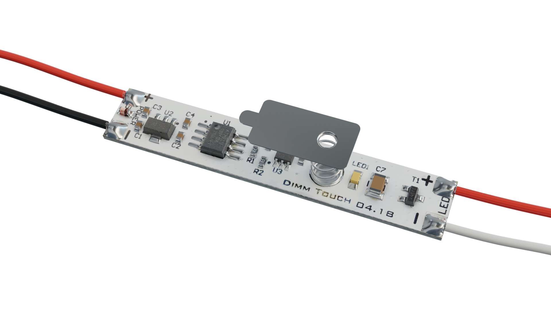 VíceDOTYKOVÝ spínač s PWM 12/24V DC stmívačem určený pro jednobarevné LED pásky. Spínač je vhodný pro instalaci v hliníkovém profilu LUMINES s vnitřními rozměry nad 10 mm. Lze jej namontovat do profilu za clonu svítidla, a to díky charakteristice zapnutí dotykem desky. Místo, kde se deska nachází, je osvětleno jednou LED diodou.