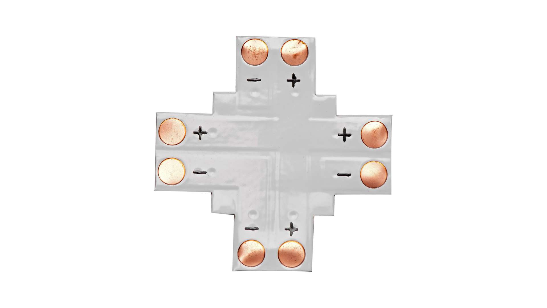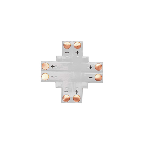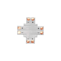 VíceKonektor pro LED pásek 10mm „+" typu umožňuje připojit čtyři sekce LED pásku ve tvaru písmene „+" pomocí pájení.